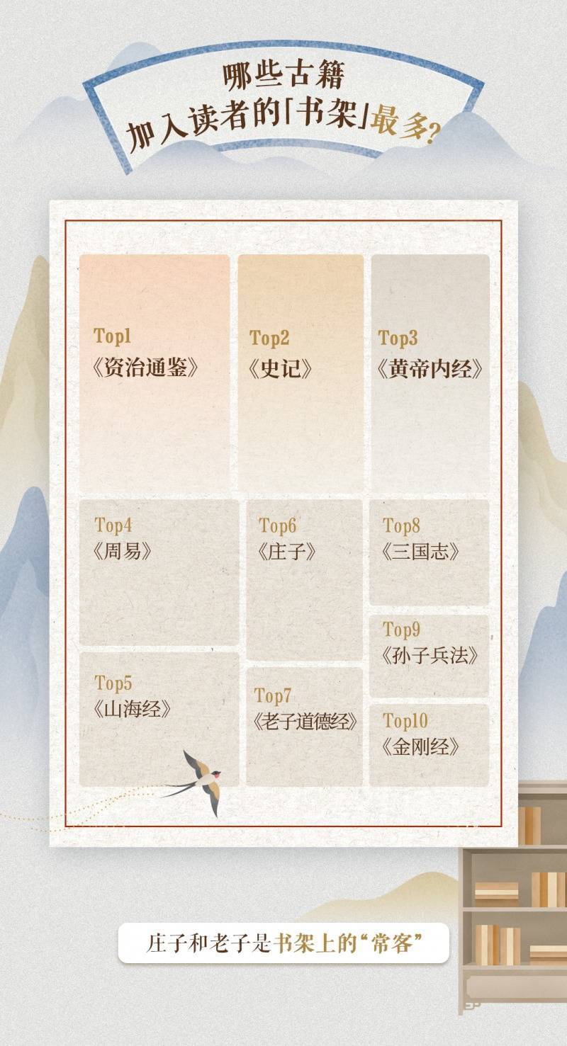 2025年4月,识典古籍App崇拜上线,用户可通过手机方便检察古籍并使用各项功能,进一步裁减了古籍阅读门槛。发达数据领路,App内《资治通鉴》《山海经》《黄帝内经》成为最受读者喜爱的古籍Top3,其中《资治通鉴》逐日眩惑近千名读者有瞻念看,同期亦然逐日被加入“书架”最多的古籍;《庄子》《说念德经》等经典著述也终年占据读者“书架”热点位置。