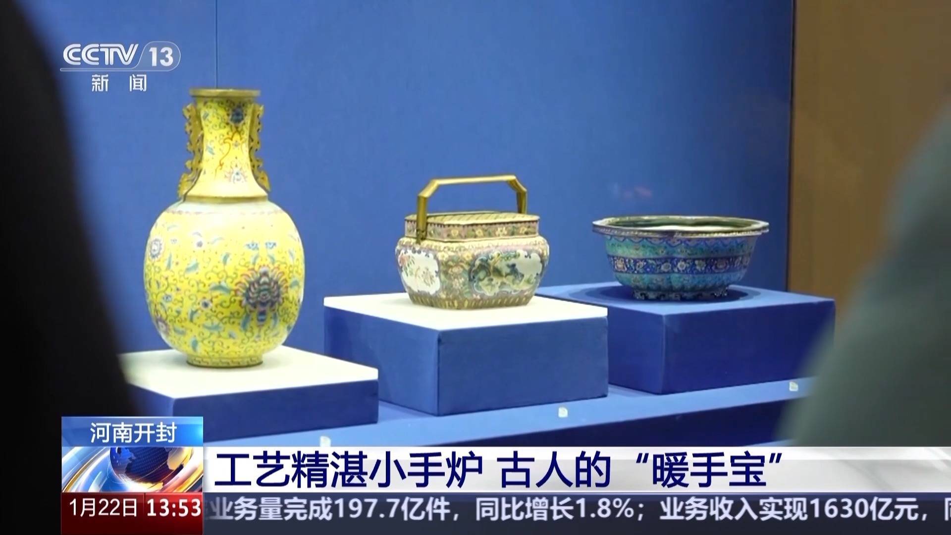 r讲究工整,彩釉流光,开封博物馆里,这件清乾隆技艺的画搪瓷开光鸟兽纹手炉,工艺深湛,纹样寓意吉利。